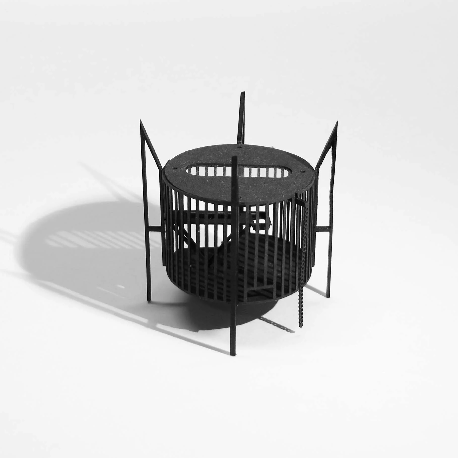 Steel frame structures, supported by cased anchor piles sit suspended above the swamp in case of flooding. These black steel membrane structures are shaded in smoked timber taken from the eel smokehouse and interchanged as they may need to be time to time. This creates a unique cladding that has a smokey weathering and patina as a result of the working community.